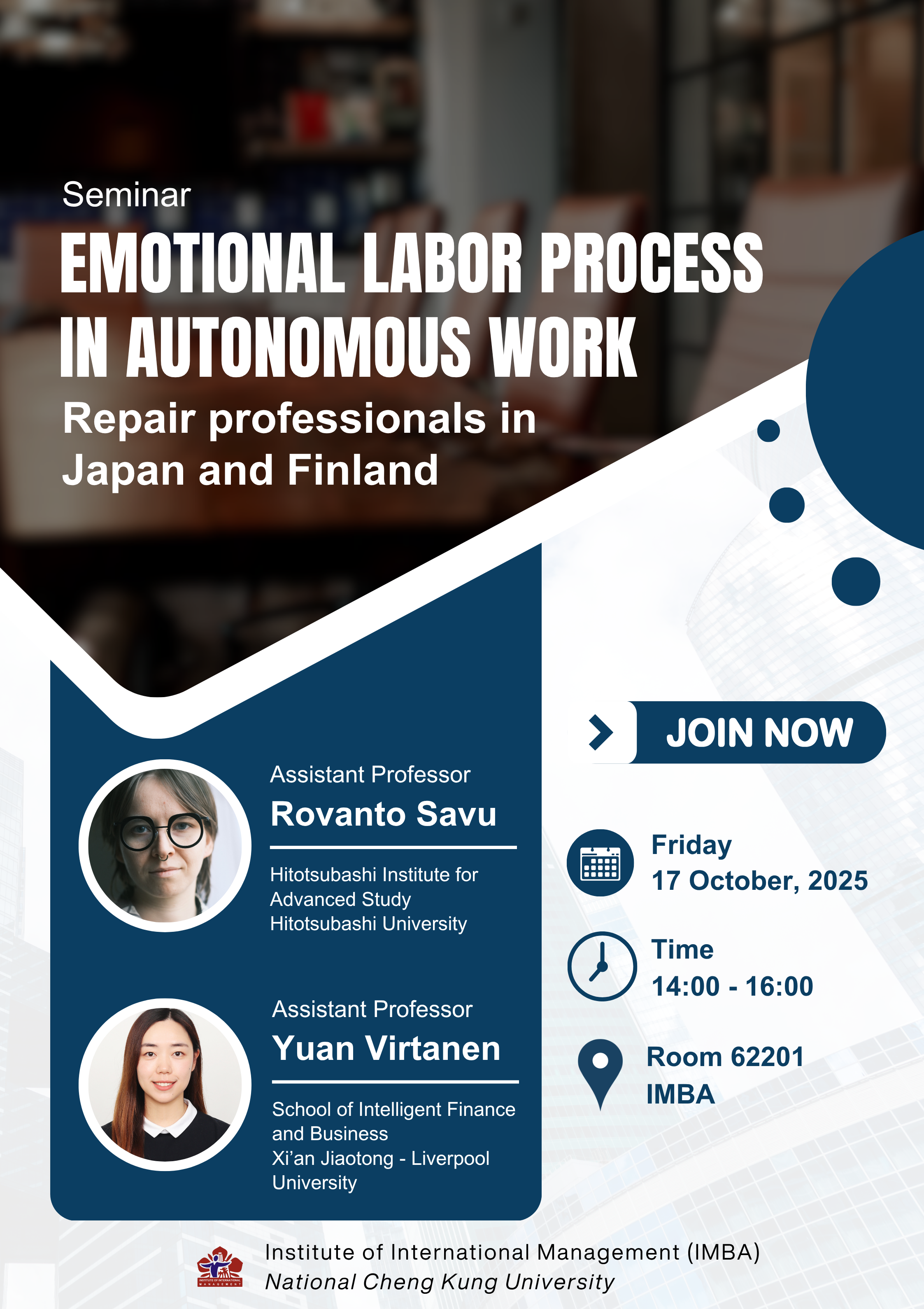 IMBA at National Cheng Kung University is excited to welcome you to our upcoming seminar: